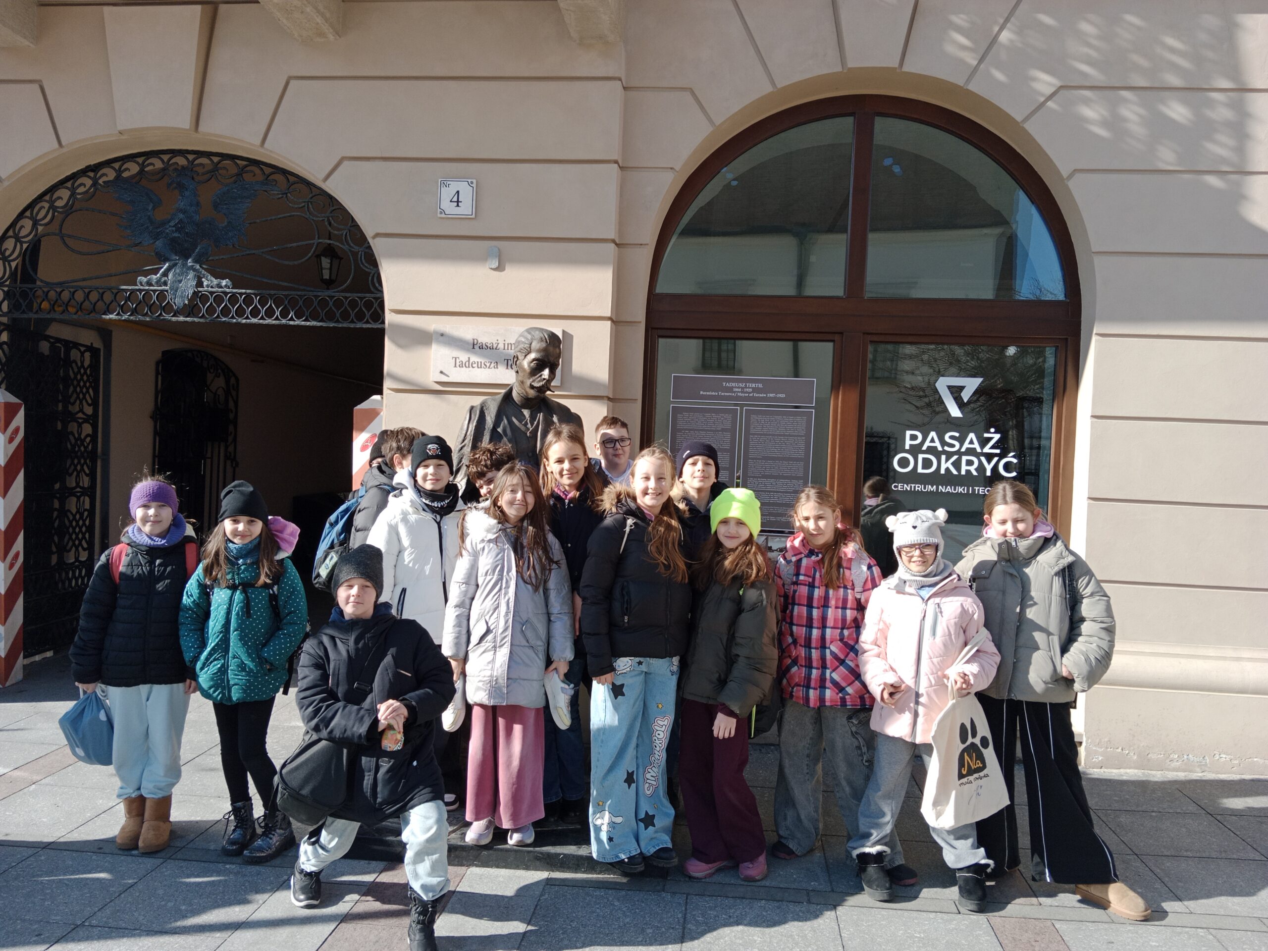 Dnia 27 lutego 2026 roku, w piątkowe, słoneczne przedpołudnie uczniowie klasy 4A pod opieką wychowawczyni, Pani mgr Katarzyny Kamińskiej – Smoleń zdobywali ciekawe doświadczenia naukowe na warsztatach w Pasażu Odkryć oraz spacerowali szlakiem znanych i ciekawych miejsc związanych z naszym miastem