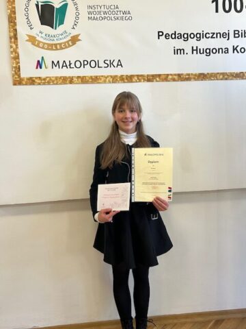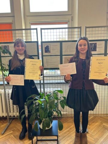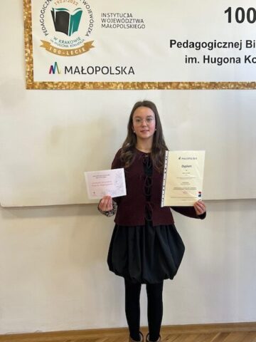 Dnia 21 listopada 2025 roku uczennice Szkoły Podstawowej Nr 24 wzięły udział w etapie wojewódzkim Małopolskiego Konkursu Recytatorskiego w Krakowie. Julia Proszowska (7A) oraz Maja Rzepa (8C) pięknie reprezentowały naszą szkołę na przesłuchaniach w Krakowie. Opiekunem uczennic była Pani mgr Małgorzata Kotecka.
