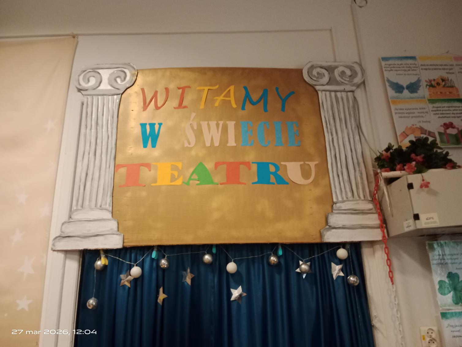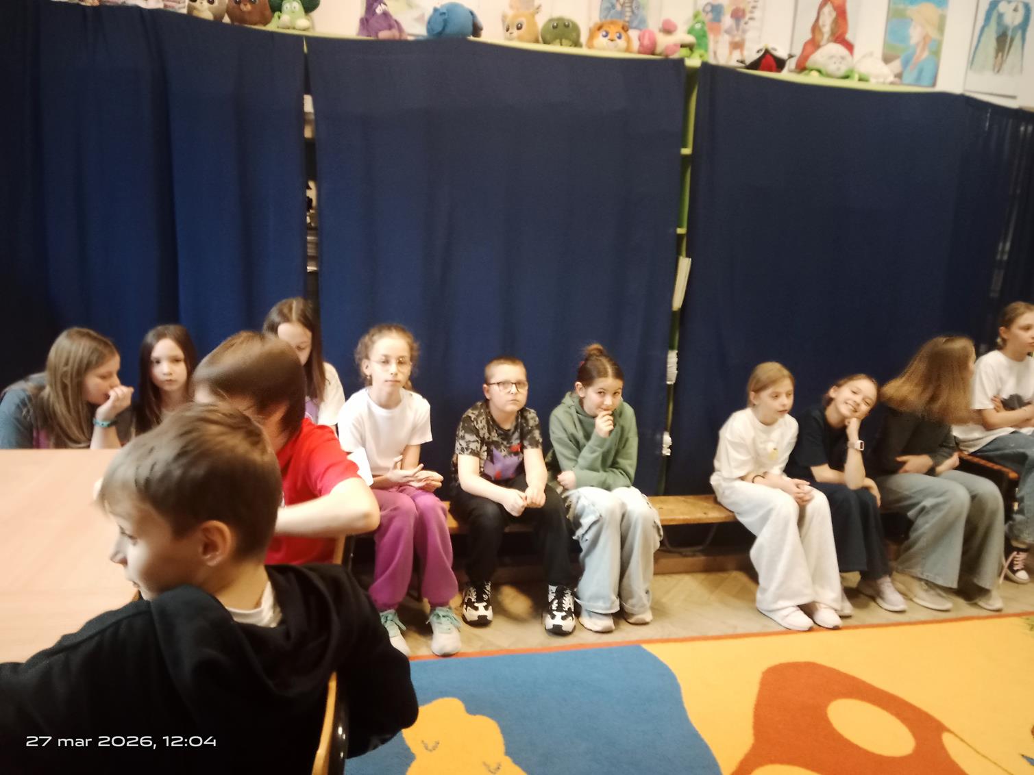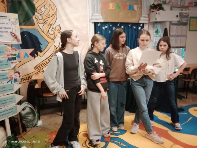 Dnia 27 marca 2026 roku klasa 4C wraz z wychowawcą obchodziła Międzynarodowy Dzień Teatru w bibliotece szkolnej. Z tej okazji uczennice z klasy 6 oraz pan bibliotekarz przygotowali interesujące warsztaty teatralne. Uczennice opracowały również informacje na temat historii i znaczenia tego święta, którymi podzieliły się z młodszymi uczniami. Z okazji Międzynarodowego Dnia Teatru odbył się także apel przez radiowęzeł szkolny. Podczas spotkania nie zabrakło teatralnych akcentów – pojawiły się maski oraz elementy związane ze sztuką teatralną. Wydarzenie było ciekawą i wartościową lekcją przybliżającą uczniom świat teatru.